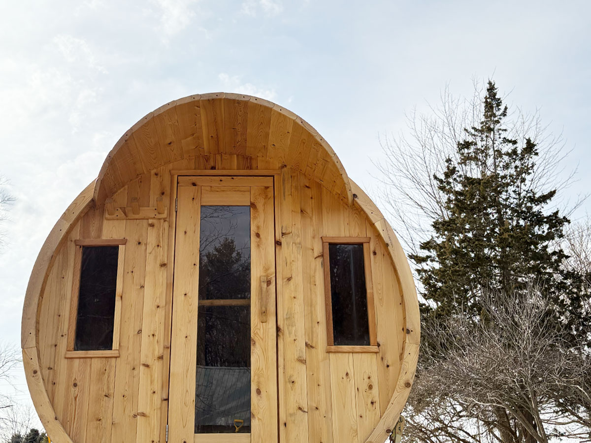The sauna has space for 6 people to sit comfortably, and includes a changing room with two benches.